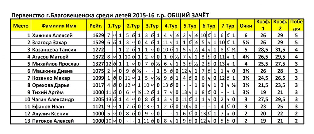 Если говорить о спортивных достижениях амурских шахматистов, то хотя наши ребята ни в одном из турниров не добились абсолютного успеха и никто из ребят не поднялся на первую ступеньку, тем не менее амурчане упорно боролись и были те, кто стали призёрами этого замечательного соревнования.