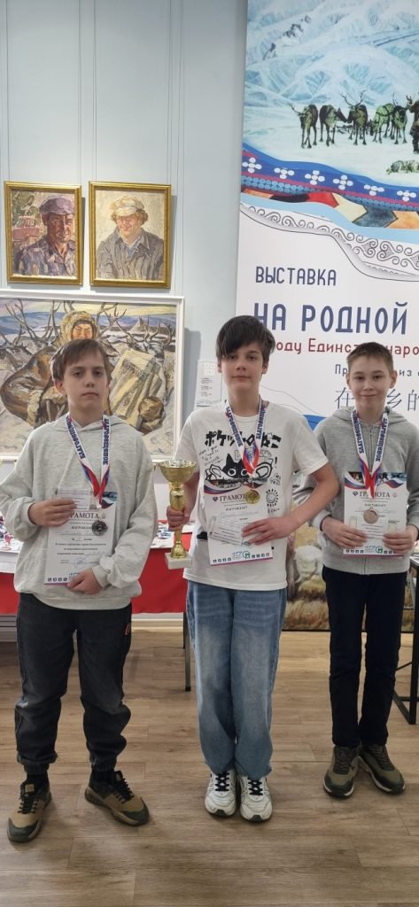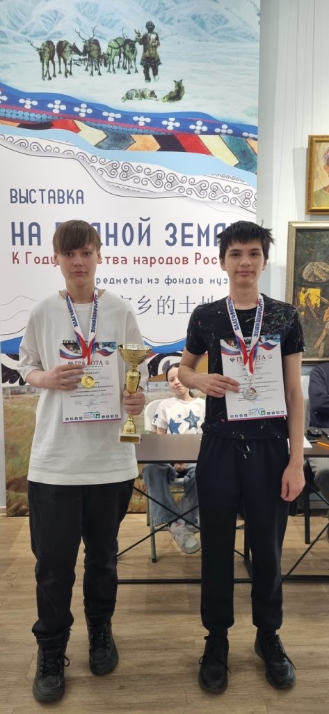У него семь с половиной очков. При этом надо отметить, что Владимир по результатам двух турниров — в быстрые шахматы и блиц — стал первым, и завоевал почетный приз — наручные часы. А на втором месте юношей Борисенко Андрей (6 очков), Бобрышев Родион на третьем месте с 5,5 очками.